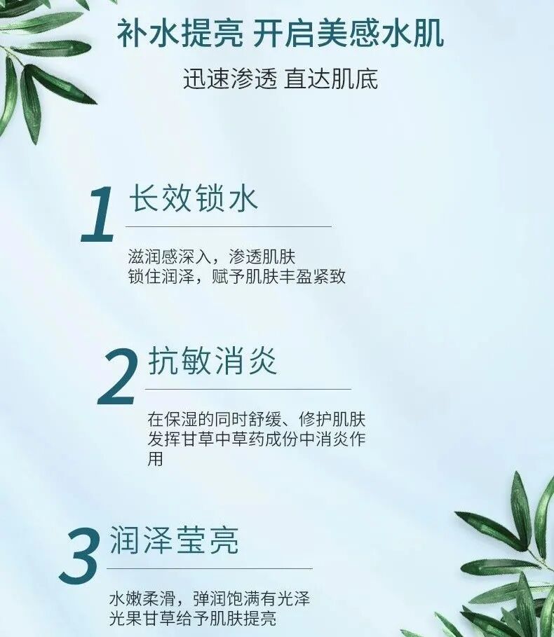 皮肤屏障是我们皮肤抵御外界的第一道防线,屏障受损,导致皮肤抵御力减弱,水合能力下降,受到外界刺激的时候,容易引发干燥、脱皮、爆痘等各种肌肤问题。“莉珂蕊丝”是英文单词“甘草”licorice的音译,该品牌以甘草作为主要成分,甄选纯天然植物,经过特殊工艺处理,如同莉珂蕊丝一般纯粹自然。核心成分是从光果甘草中提取的甘草酸二钾,添加量0.5%,其它主要成分还有透明质酸和Amino-17(17种人体所需氨基酸组合),并由日本进口384桑蚕丝膜布承载,轻盈附着、迅速补水、长效保湿、抗敏消炎。能够增强我们肌肤的抵御能力,减少皮肤受外界刺激。光果甘草根提取物,被誉为“美白黄金”,含有其它黄酮类活性成分,如光甘草定,具有强大的美白、提色、抗氧化功效。Lico面膜添加大量此种有效成分,美白、提色、抗氧化效果显而易见,坚持使用效果更佳,给你一张白嫩细腻宛若婴儿般的健康美肌。 提取物中的明星成分——甘草酸二钾是甘草根部的高价值提取物,作为光果甘草深层补水修护面膜的主要成分,甘草酸二钾具有优秀的抗敏(抗组胺)、消炎、保湿、止痒功效,在药品(滴眼液等)、日化(牙膏等)、化妆品、食物添加剂(保鲜剂、甜味剂)中多有应用。莉珂蕊丝秉承“天然不添加”的理念,呵护每一寸肌肤。因为甘草酸二钾优秀的抗敏特性,足量添加于高端化妆品,可以有效中和配方中其它致敏成分对皮肤的刺激,也就省却了添加专用的防腐剂。这样一来,就减少了过敏瘙痒的潜在可能性。除了使用温和清洁面部、使用水、乳、霜补水保湿以外,我们还可以使用含有玻尿酸成分的面膜,来深入补水,修复受损肌肤,赶走肌肤的“坏情绪”。相信大家都对玻尿酸并不陌生,因其天然保湿因子和抗衰老因子被熟知,其补水以及深层锁水效果显著,是面膜中的“水库”,让干涸肌肤一次性喝饱了水。玻尿酸又名透明质酸,是一种广泛分布于人体中的粘多糖,可以保持皮肤的柔嫩、光滑、去皱、增加弹性,玻尿酸“小小的身材”却蕴含“大大的能量”。它的补水功能强大,锁水效果更是其本身重量的100倍。同时,玻尿酸也是良好的透皮吸收促进剂,可以渗透肌肤深层补水,同时具有一层“锁水膜”可以避免过快的水分蒸发以及流失,与Lico面膜的其它成分配合使用更是锦上添花,可以打开毛孔注入鲜活能量和营养元素,起到促进营养吸收的理想效果。