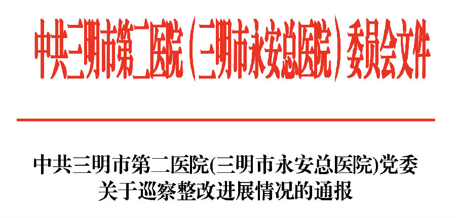近日,福建三明市第二医院发布《关于巡察整改进展情况的通报》。