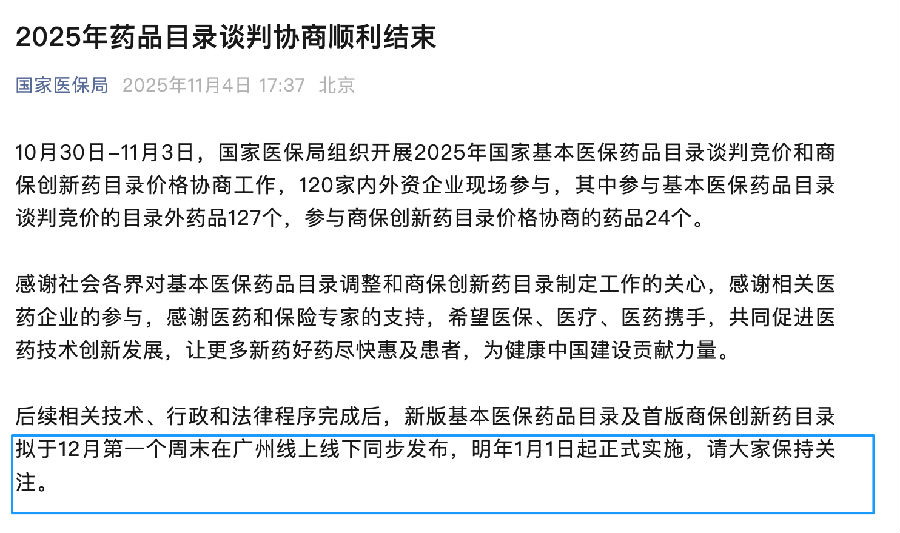 刚刚!国家医保局公布,2025版医保目录发布、执行时间