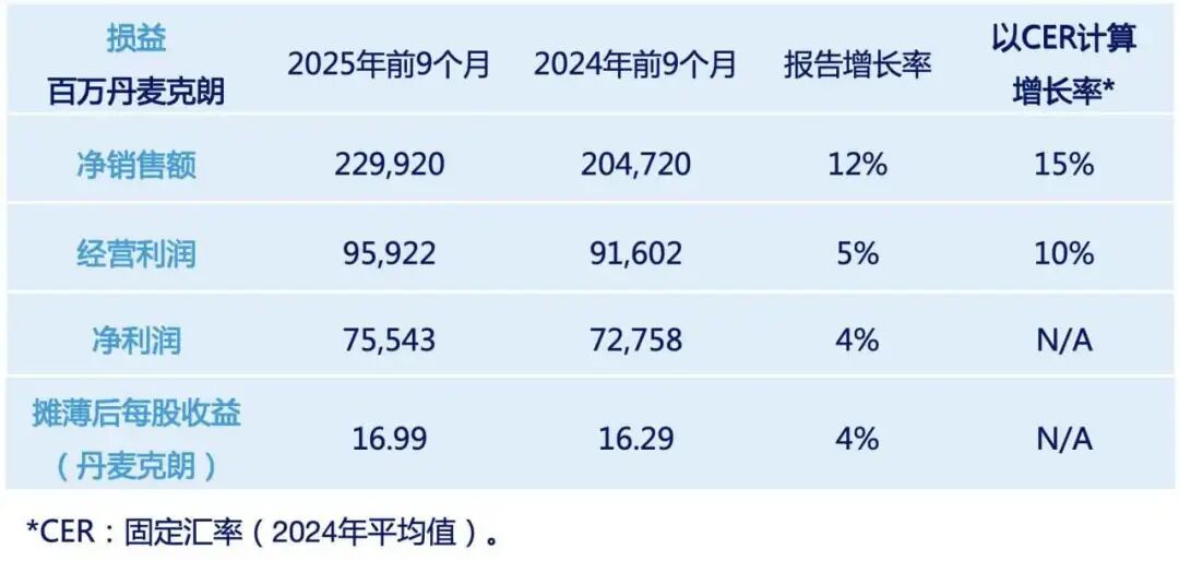 目前,诺和诺德已经对2025年做出展望,预计销售增长率以CER计算为8-11%;经营利润增长率以CER计算为4-7%,其中全公司范围转型预计会为全年带来约80亿丹麦克朗的负面影响。以丹麦克朗计算的销售和经营利润增长将比以CER计算的增长率分别低4个和6个百分点。