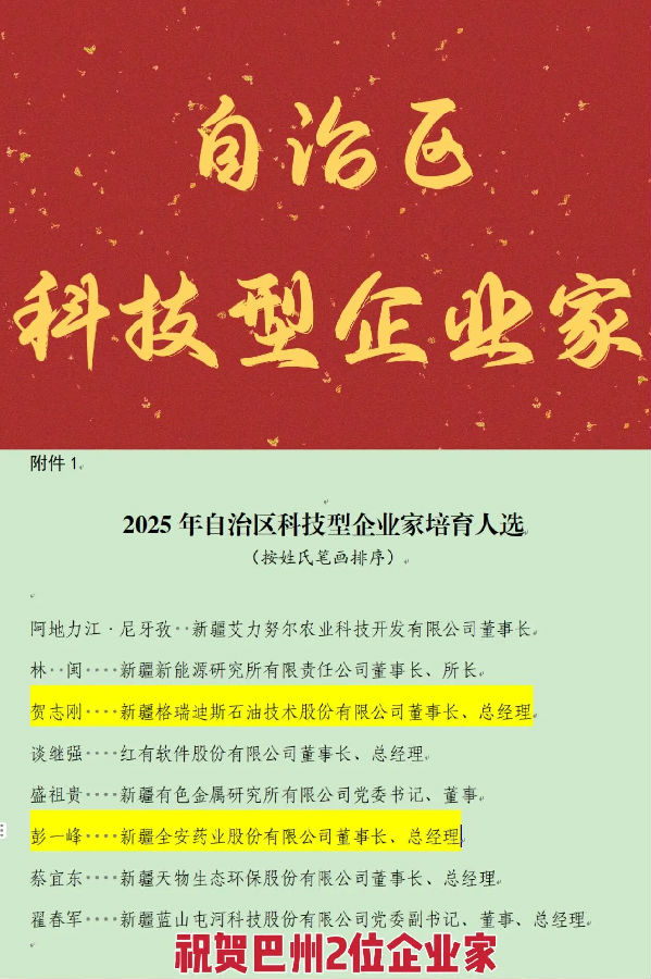 从深耕本土到领航行业,从技术突破到产业反哺,彭一峰的创新之路,正是全安药业 “以科技铸品质,以实业担使命” 的生动写照。此次入选自治区科技型企业家培育名单,既是个人荣誉,更是企业发展的新起点。未来,全安药业将在彭一峰的带领下,继续以科技创新为引擎,书写西部医药产业高质量发展的新篇章!
